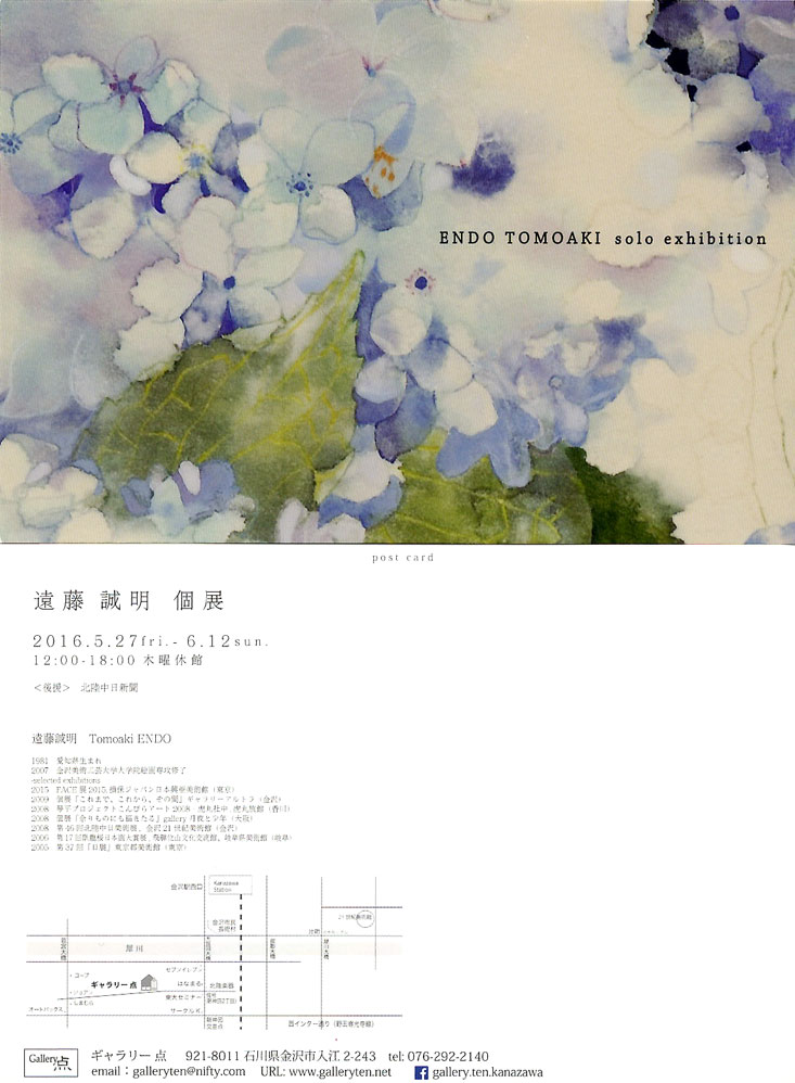 個展「ENDO TOMOAKI solo exhibition」 「遠藤 誠明 個展ーENDO TOMOAKI solo exhibitionー」 2016. 5. 27(金)ー6. 12(日) ギャラリー点 石川県金沢市入江