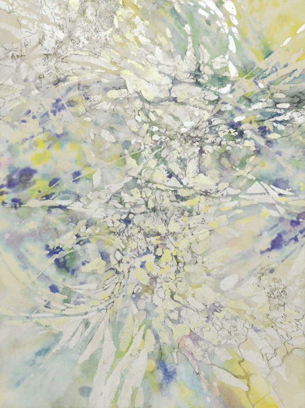 「刻-あわの音-」 2019年 H60.0×W45.0 銀箔、金箔、岩絵の具、鉛筆/麻紙/染料など