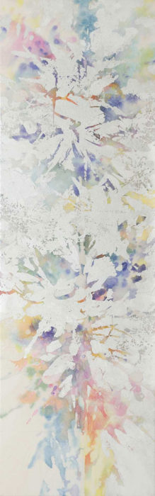 「刻-晩-」 2019年 H79.0×W25.0 銀箔、岩絵の具、鉛筆/麻紙/染料など