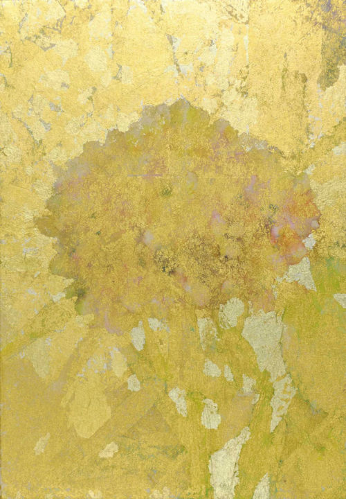 「刻-集真藍-」 2019年 H30.0×W21.0 金箔、鉛筆/麻紙/染料など