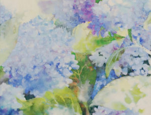 「雨のはな」 2012年 H23.0×W30.0 岩絵の具、色鉛筆/麻紙/染料など