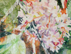 「ユキノシタ」 2007年 H110.0×W145.5 岩絵の具、箔/麻紙/染料など