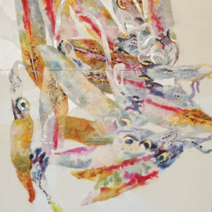 「これ烏賊が」 2007年 H193.5×W193.5 岩絵の具、箔/麻紙/染料など 第46回北陸中日美術展入選