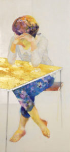 「thinking」 2014年 H162.0×W75.0 岩絵の具、箔、色鉛筆/麻紙/染料など FACE展2015入選
