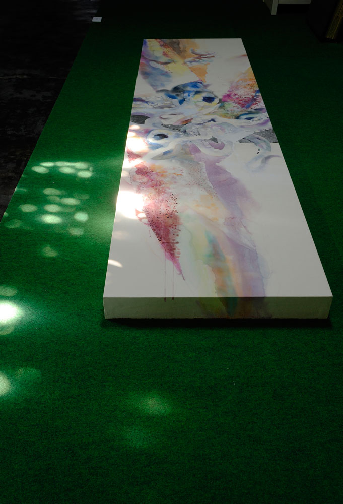 蜘蛛がいつの間にか家の中に巣を作っているように、作品が家の様々な場所に巣くっている。金澤町屋の良さを活かし、あくまでも家に寄り添った形で作品を存在させる。その様な展示を目指しました。